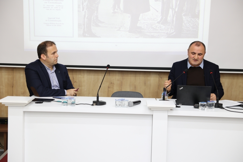 Mustafa Göleç sunumunu, Savaş Gezileri Örneklerine Bakarak Vücut Bulan Seyahat Edebiyatı başlıklı konusu üzerinden devam ettirdi. Siyasi ve diplomatik seyahatlere giriş yaparak savaş yılları boyunca en çok gezen hanedan mensubu II. Wilhelm olduğunu ve savaş çıkmadan önce II. Wilhelm’in yatı ile Norveç ziyaretini, Cephe’de Polonya’da Litvanya’da bulunduğunu ve İstanbul’a da geldiğini ve gezdiğini belirtti. Aynı şekilde bu ziyaretlere Osmanlı’dan da gidenler olduğunu buna örnek olarak ise Veliaht Mehmet Vahdeddin Efendi’nin birkaç defa Avrupa seferine çıktığını birincisinin Franz Joseph’in cenazesi için gittiğini, bir diğeri Kaiser için gittiği yolculuk olarak bildirdi. Bu seyahatlerin dışında bir de devlet adamlarının yurtiçinde yaptığı seyahatlerin neden ve ne amaçla yapıldığından bahsederek iç seyahatler ve iç siyasi seyahat olarak nitelendirdi.